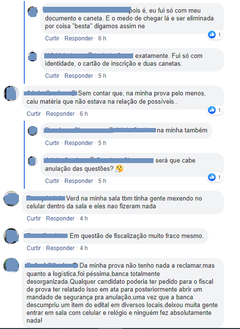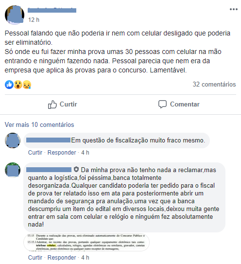 A maior crítica, no entanto, diz respeito ao porte do celular. De acordo com vários participantes, a fiscalização não observou esta regra do concurso, permitindo pessoas com celulares dentro das salas.