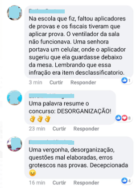 Outra reclamação recorrente dos candidatos em grupos de Whatsapp e outras redes sociais diz respeito a questões referentes a conteúdos que não constavam no edital. O fato foi mais criticado por quem se inscreveu a cargos da área da saúde.