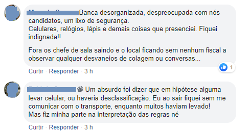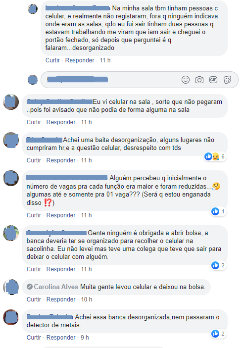 A maior crítica, no entanto, diz respeito ao porte do celular. De acordo com vários participantes, a fiscalização não observou esta regra do concurso, permitindo pessoas com celulares dentro das salas.
