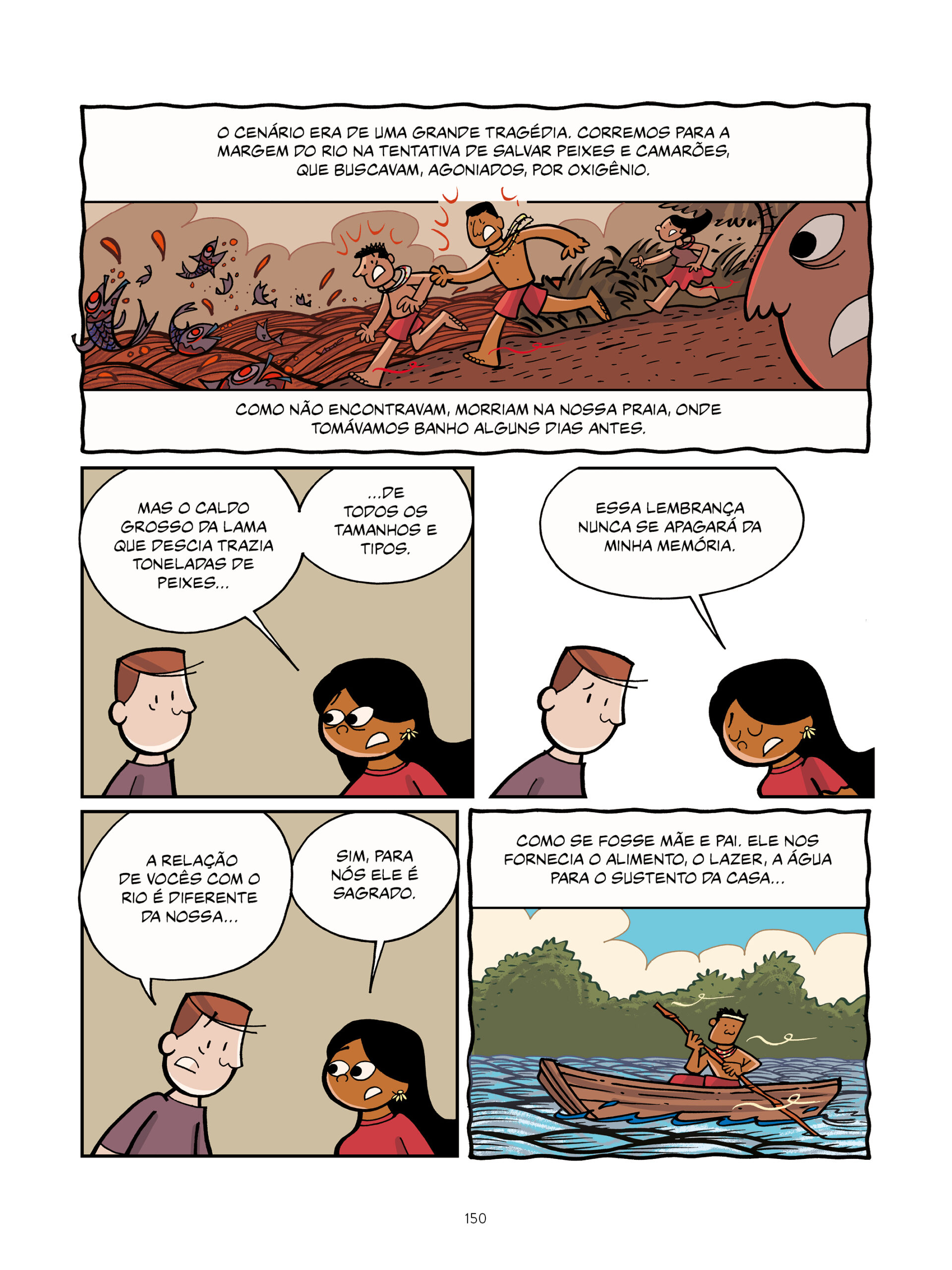 O traço do artista constrói uma narrativa que funciona como registro e como denúncia. As cores são de Marianne Gusmão, que utiliza diferentes tonalidades para representar a lama e suas consequências emocionais na vida das pessoas.